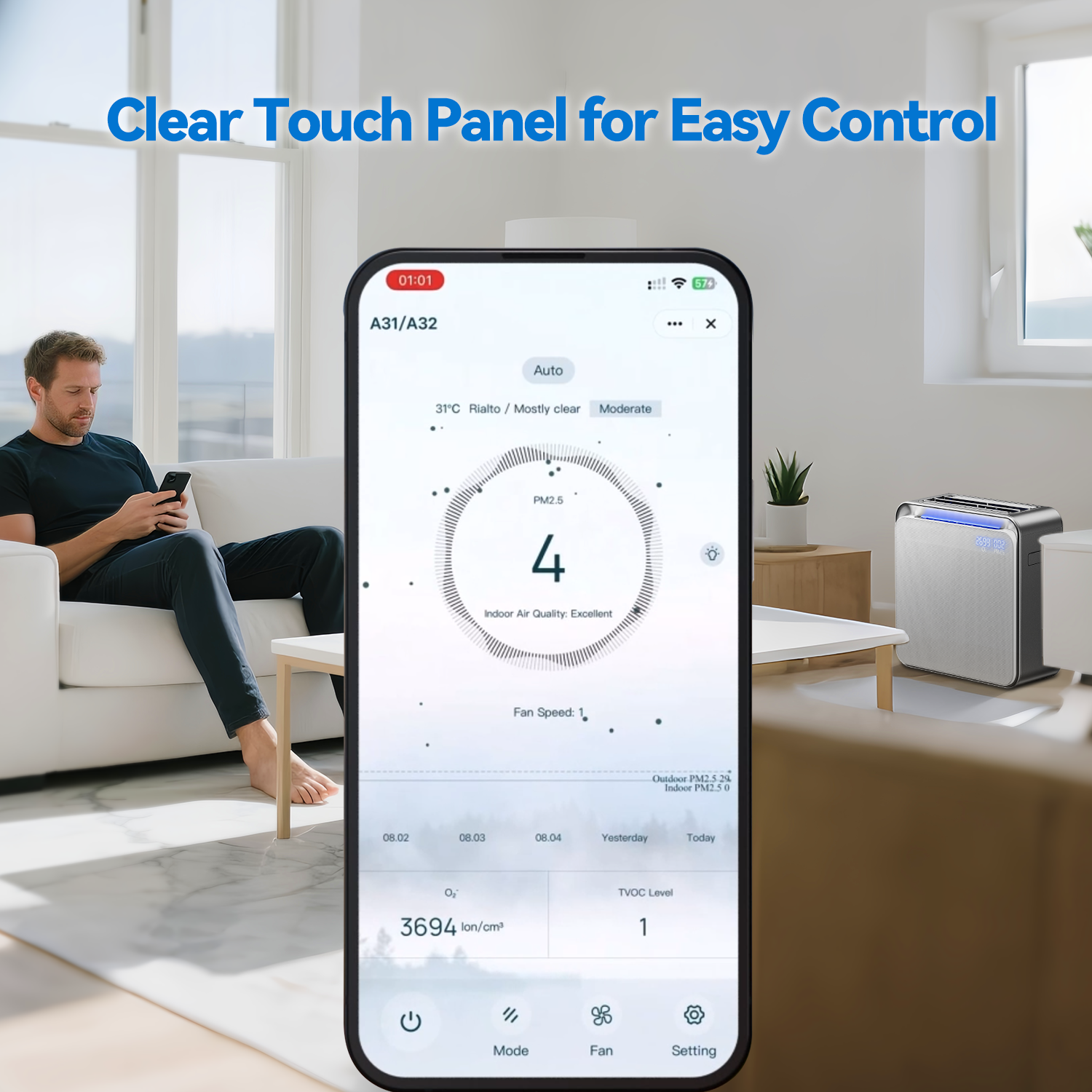Proprietary negative oxygen ion technology (2,000–5,000 ions/cm³) delivers a refreshing, forest-like atmosphere—boosting energy, reducing stress, and improving sleep—without ozone, radiation, or static.