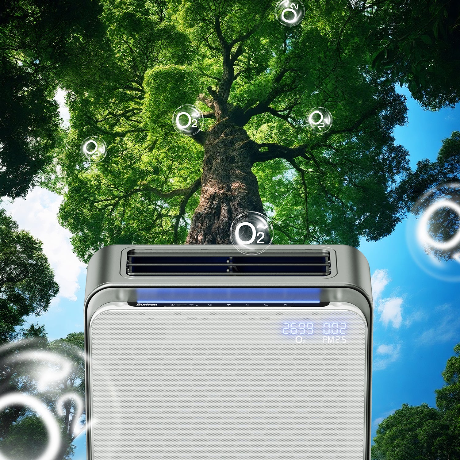 Burtran Nano-Oxy™ HEPA 14 Air Purifier for Home, up to 1,360 ft²/h, with air quality display, balanced 5-stage PM2.5 and TVOC filtration, eliminates 99.995% micro pollutants, Wi-Fi, 120V AC